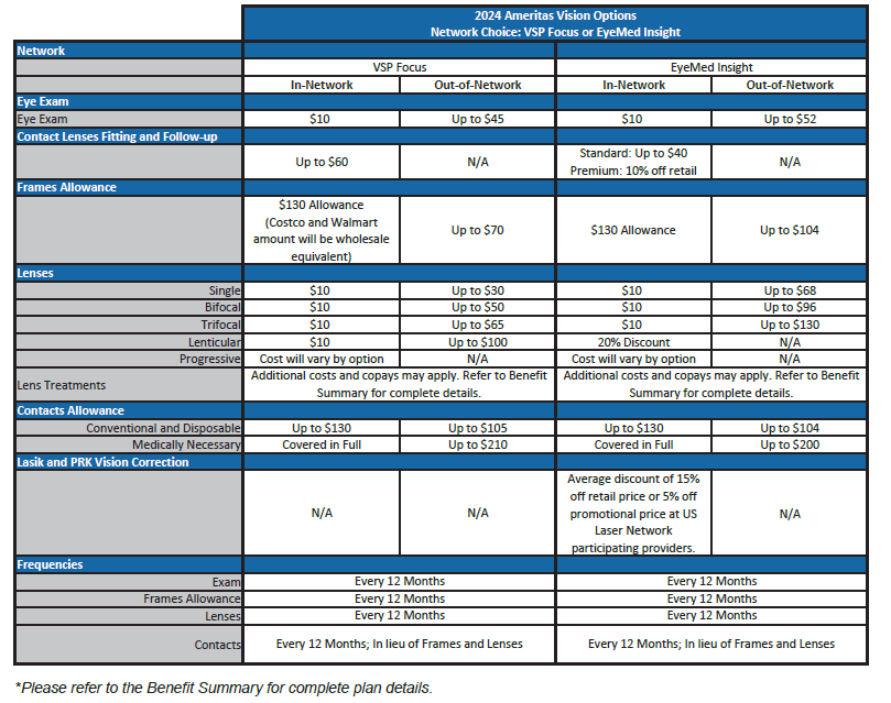 With the Ameritas Vision Plan, you may visit any vision provider. However, in order to maximize your Ameritas vision benefit, we encourage you to visit an in-network provider.